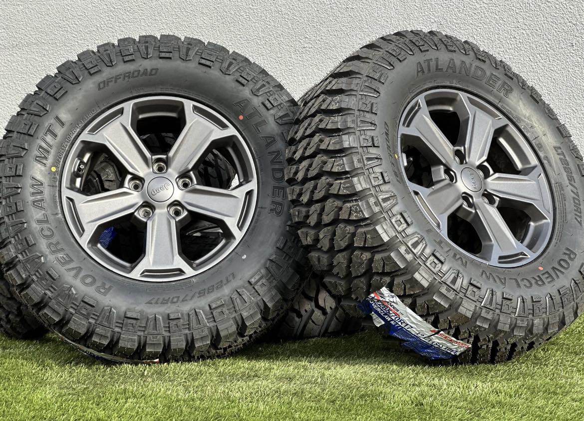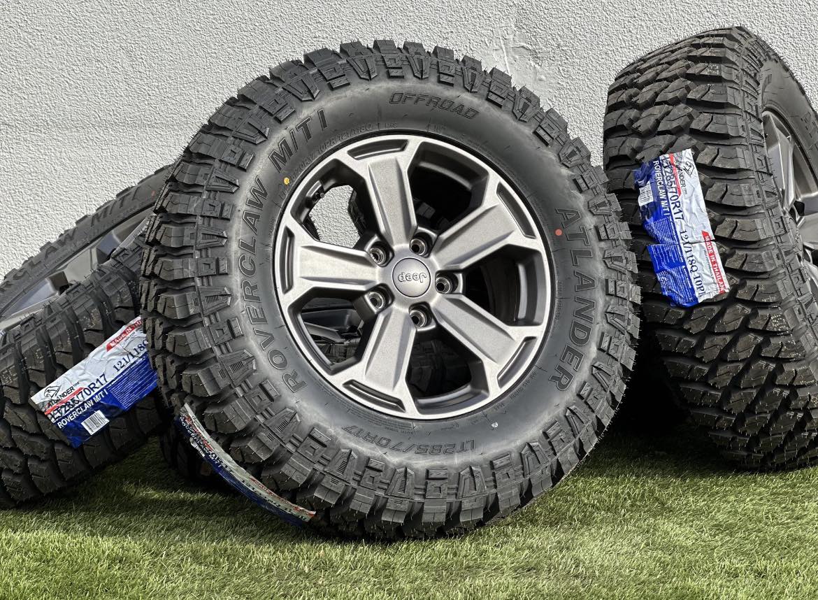 True 33-Inch Mud-Terrain Performance Wrapped around these rims are professional-grade 33-inch Mud-Terrain (MT) tires (LT285/70R17). These tires are engineered for the driver who refuses to let the trail dictate their path, featuring aggressive self-cleaning tread blocks, stone ejectors, and reinforced sidewalls. Because this is a set of five, you receive a matching full-size spare to ensure your Jeep’s look and functionality remain consistent, allowing for a proper 5-tire rotation to extend tread life.